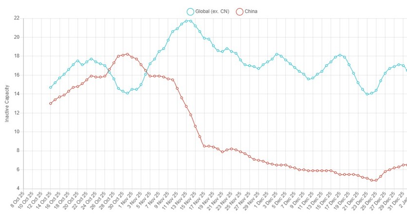 Fig I: SAVANT inactive capacity series, China and RoW, October 2025 – Present